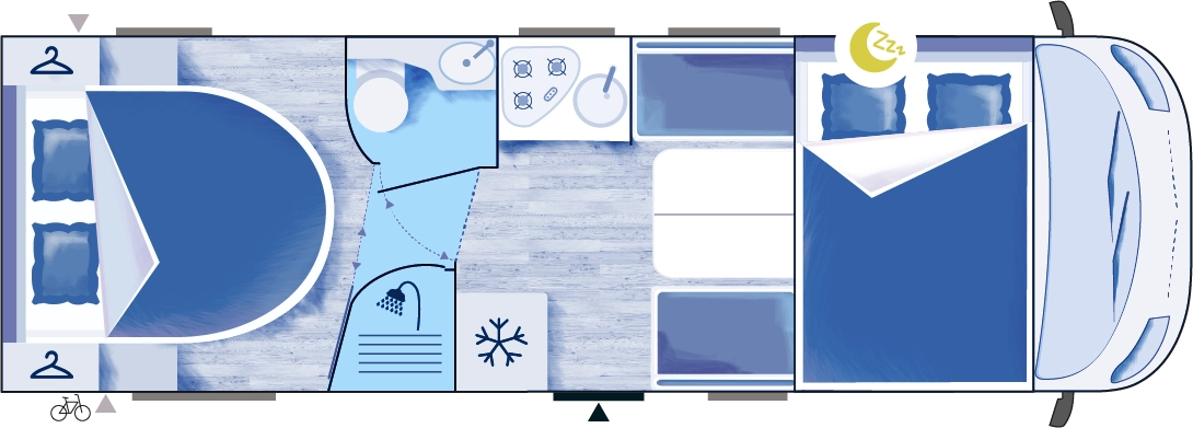 PACK PASSION OFFERT: Caméra de recul, douchette ext., duo control gaz, matelas mémoire de forme, stores plissé cabine et Pioneer 9p