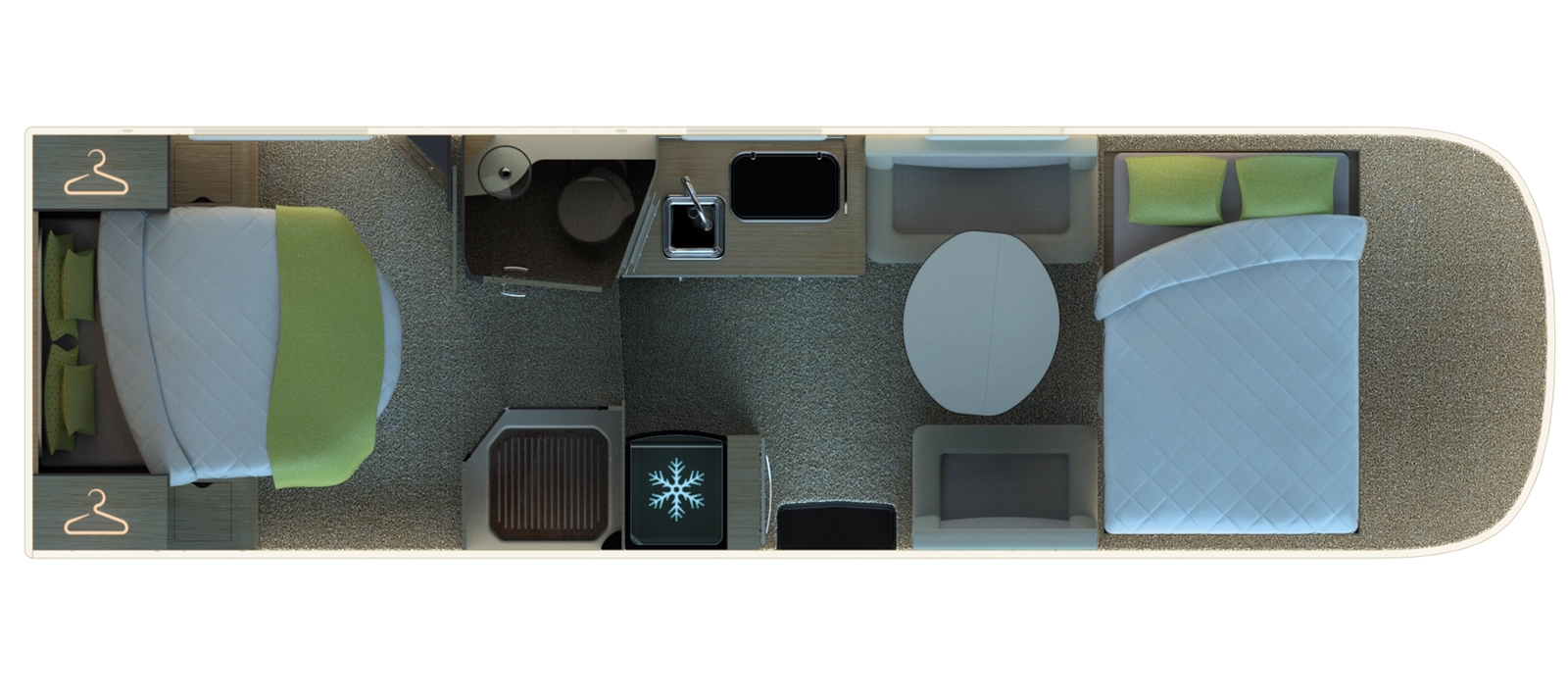 PACK PASSION : Caméra de recul, douchette ext., duo control gaz, matelas mémoire de forme, stores plissé cabine et Pioneer 9p