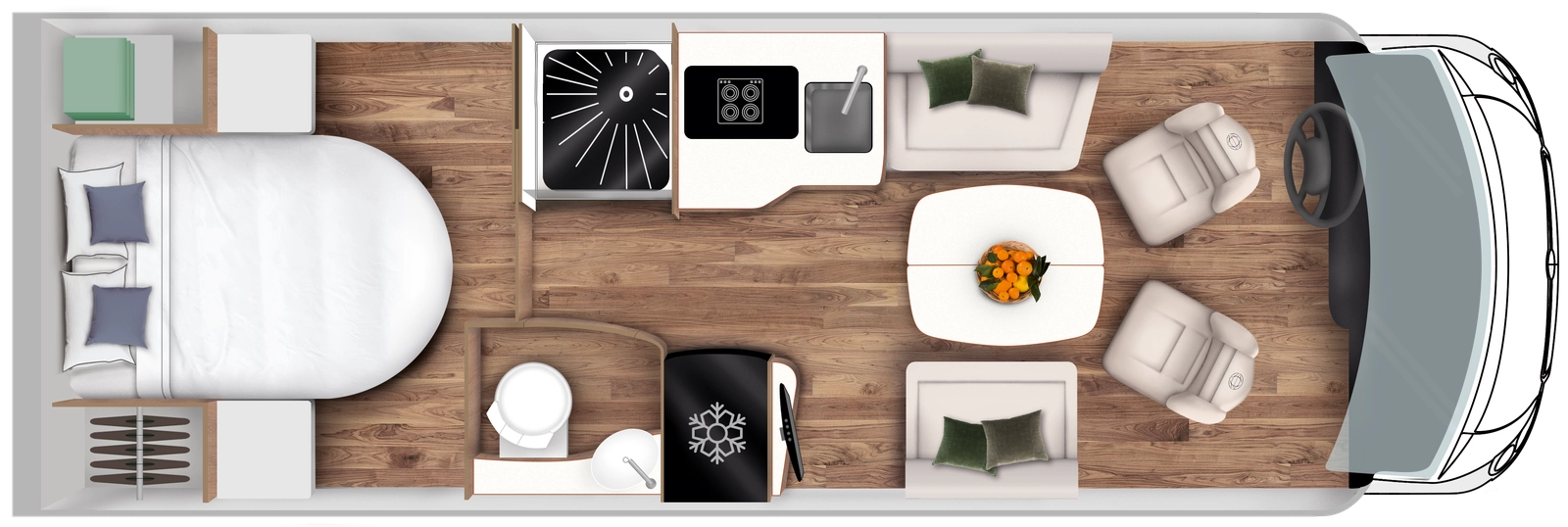 "Pour des aventures toute l'année, optez pour le camping-car Le Voyageur Intégral ! Avec sa douche et WC séparés, sa boite auto et son isolation renforcée, vous serez prêt pour affronter toutes les saisons. Et avec son grand réservoir d'eau, vous pourrez profiter de votre voyage sans soucis. Alors n'hésitez plus, embarquez à bord et partez à l'aventure en toute tranquillité ! Et rappelez-vous, avec Le Voyageur, c'est toujours l'heure de l'évasion, même en hiver !"