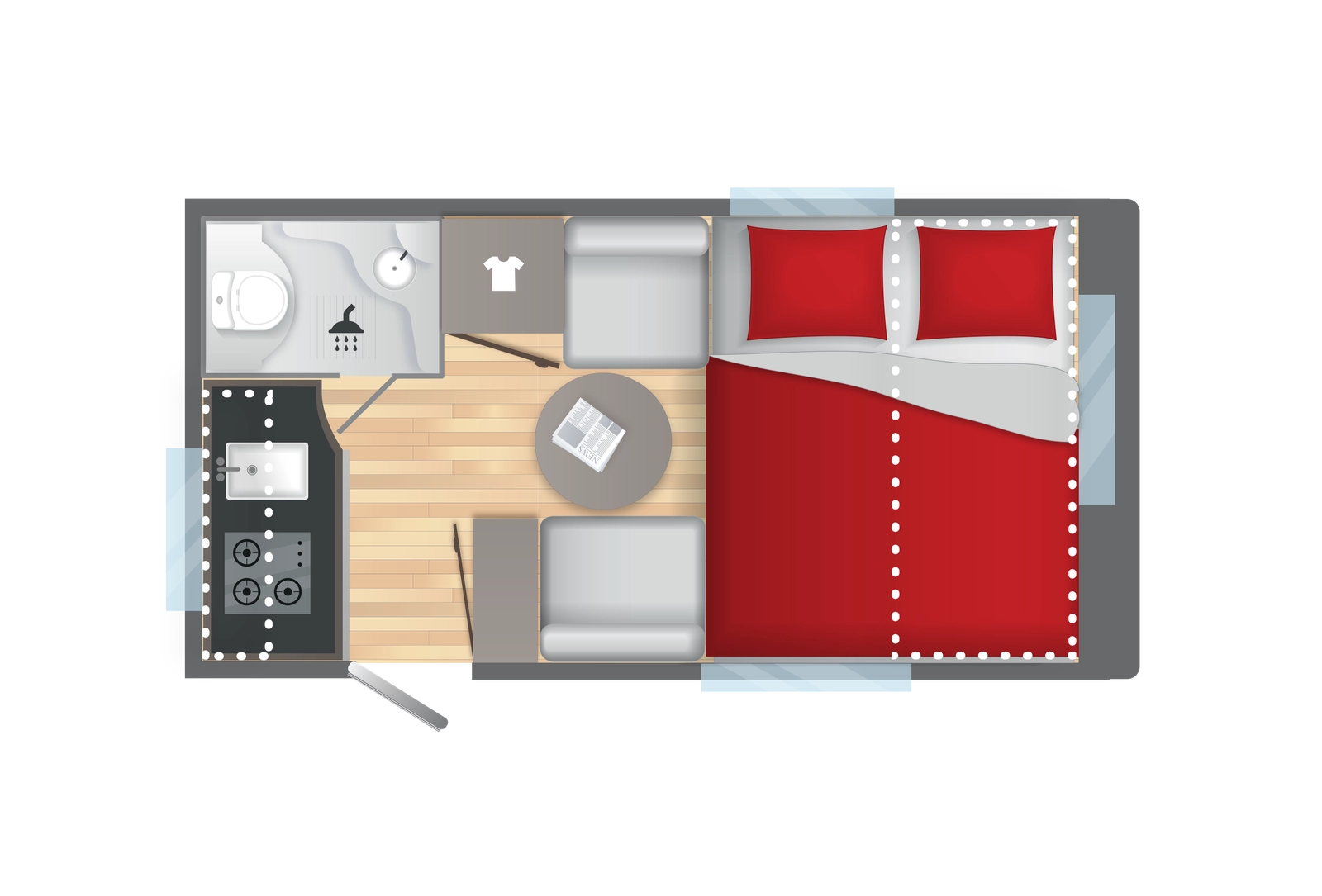 PACK AMBITION : Lanterneau panoramique 70x50cm • Chauffe-eau Truma-therme 5 L • Porte Moustiquaire • Spots de lecture LED / prise USB • Réservoir
